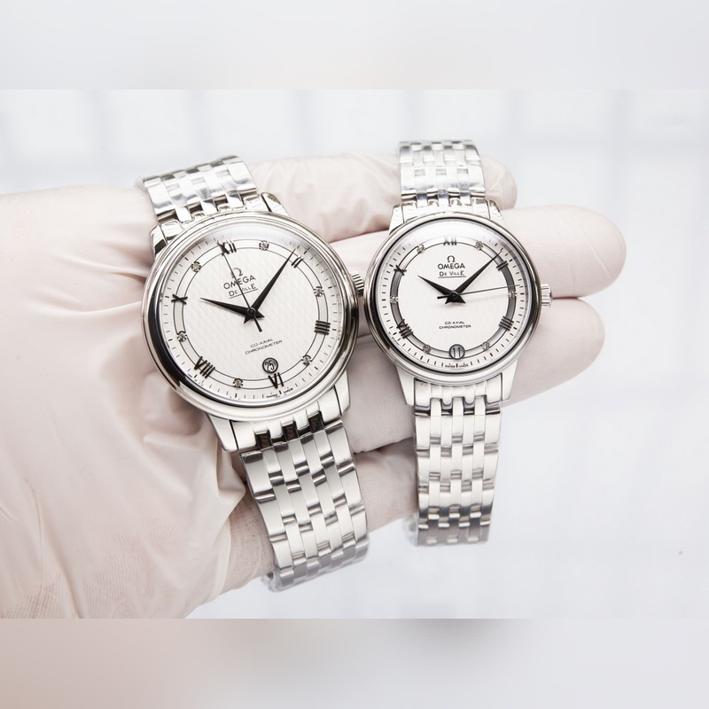 Omega De Ville Couple Replica Watch Authentic Sunburst Dial Arc Surface Glass High Quality