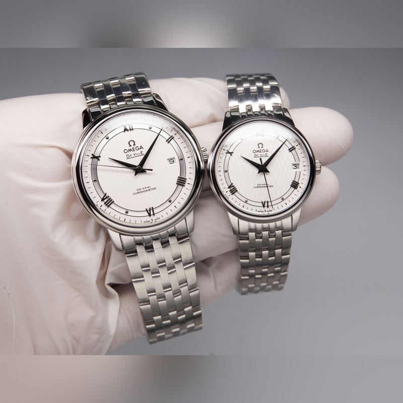 Omega De Ville Couple Replica Watch Genuine Sunburst Dial Arc Surface Glass