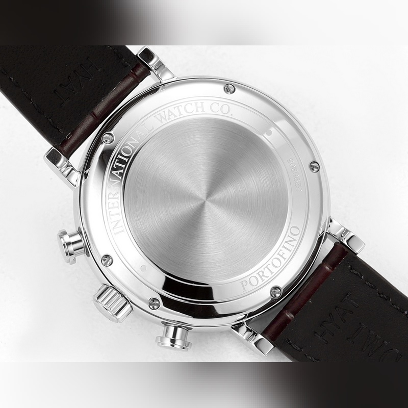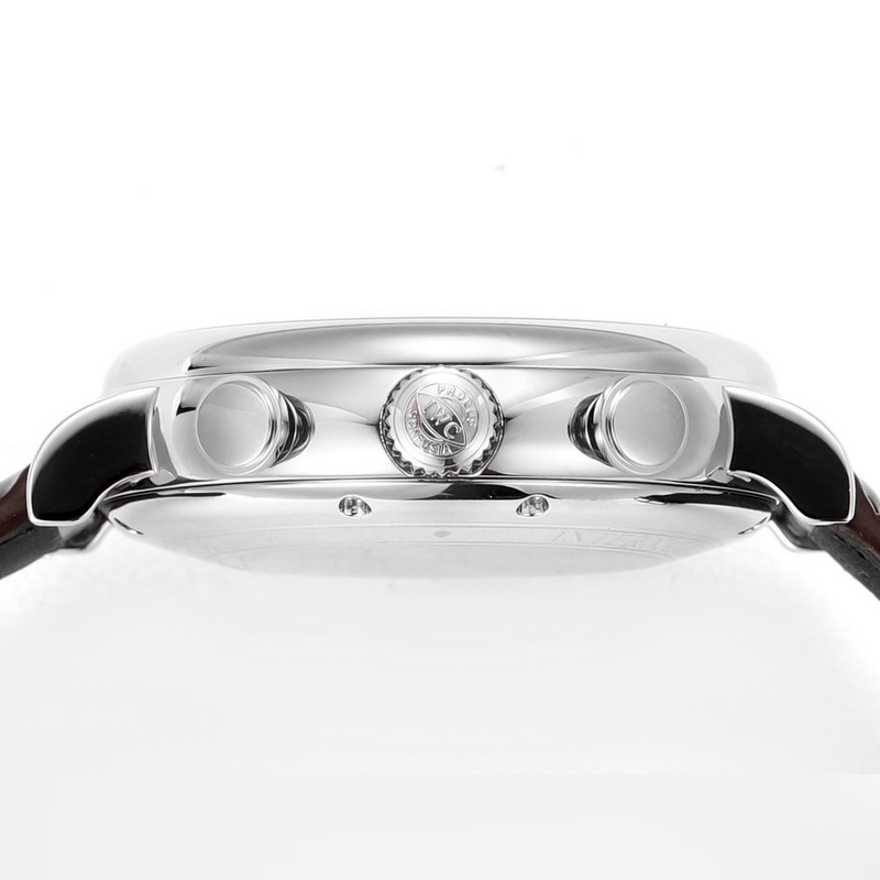 The IWC Portofino Chronograph has a size of 42mmX13.5mm. Perfectly in sync with the original, the case is made of stainless steel, and after careful polishing, it presents a delicate luster. The lugs have a natural curvature and are perfectly integrated with the case, with smooth lines and shining luster. The watch is equipped with a Shanghai 7750 modified 4601 automatic mechanical movement, which realizes all functions consistent with the original, a closed bottom design, an anniversary logo engraved on the bottom, and Italian calfskin with a pin buckle. It is easy to wear and has an excellent hand-held effect.