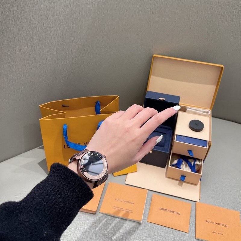 Full set of counter packaging Including instruction manual and charger The new Tambour Horizon smart watch combines Louis Vuitton’s travel spirit, exquisite craftsmanship and innovative ideas to bring a unique interconnected experience. It not only meets the various needs of travel and daily life, but also highlights personal style and temperament. Design Stainless steel polished case Case diameter: 42 mm Case thickness: 12.6 mm Case back: Black sapphire glass with engraved LV logo in steel Technical features Rotatable functional crown 1.2-inch round AMOLED full touchscreen with a resolution of 390 x 390 (327 ppi)