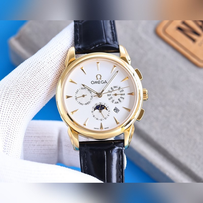 Omega – De Ville series – couple watch authentic mold, the lettering is consistent with the authentic one with sun pattern, the curved hourglass is upgraded to high-definition arched double-sided sapphire glass (clearer display, scratch-resistant), the back of the steel band is also synchronized with the original with the laser product number, it took 9 months to correct and upgrade many times, to create 11 shells, strive for perfection, the men’s diameter is 39.5mm, and the women’s style is 32.7mm. The original Citizen 8215 movement is used, with a frequency of 28,800 times per hour, and zero rework quality. The style is matched with Italian cowhide to make the wrist more comfortable. The strap body/buckle is engraved with the classic “OMEGA” logo, which is generous and classy. Please pay attention to the details when taking real objects.
