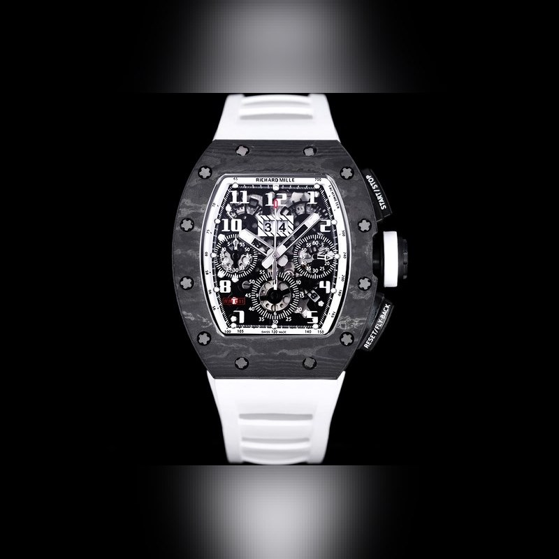 Carbon fiber material restores the original texture High-grade original black ceramic White ceramic restores the original The perfect ergonomic design coincides with the brand’s pursuit of perfection. Every component of the RM 011 is an aesthetic expression of its function. The RM 11-FM watch retains the most recognizable iconic shape, but the craftsmanship used is still far beyond the past. For the case, the titanium style is shown in the picture, but there are also rose gold and titanium versions to choose from, but no matter which one, they all have a finely crafted brushed surface, which is matched with polished chamfers, showing a sharp contrast. Equipped with a 7750 chronograph mechanical movement, clearly marked with functional fonts (Start/Stop and Reset/Fly-back), its design is inspired by the pedals in F1 racing cars. All these optimization changes make this RM 11-FM flyback chronograph automatic watch more sporty and trendy than previous styles.